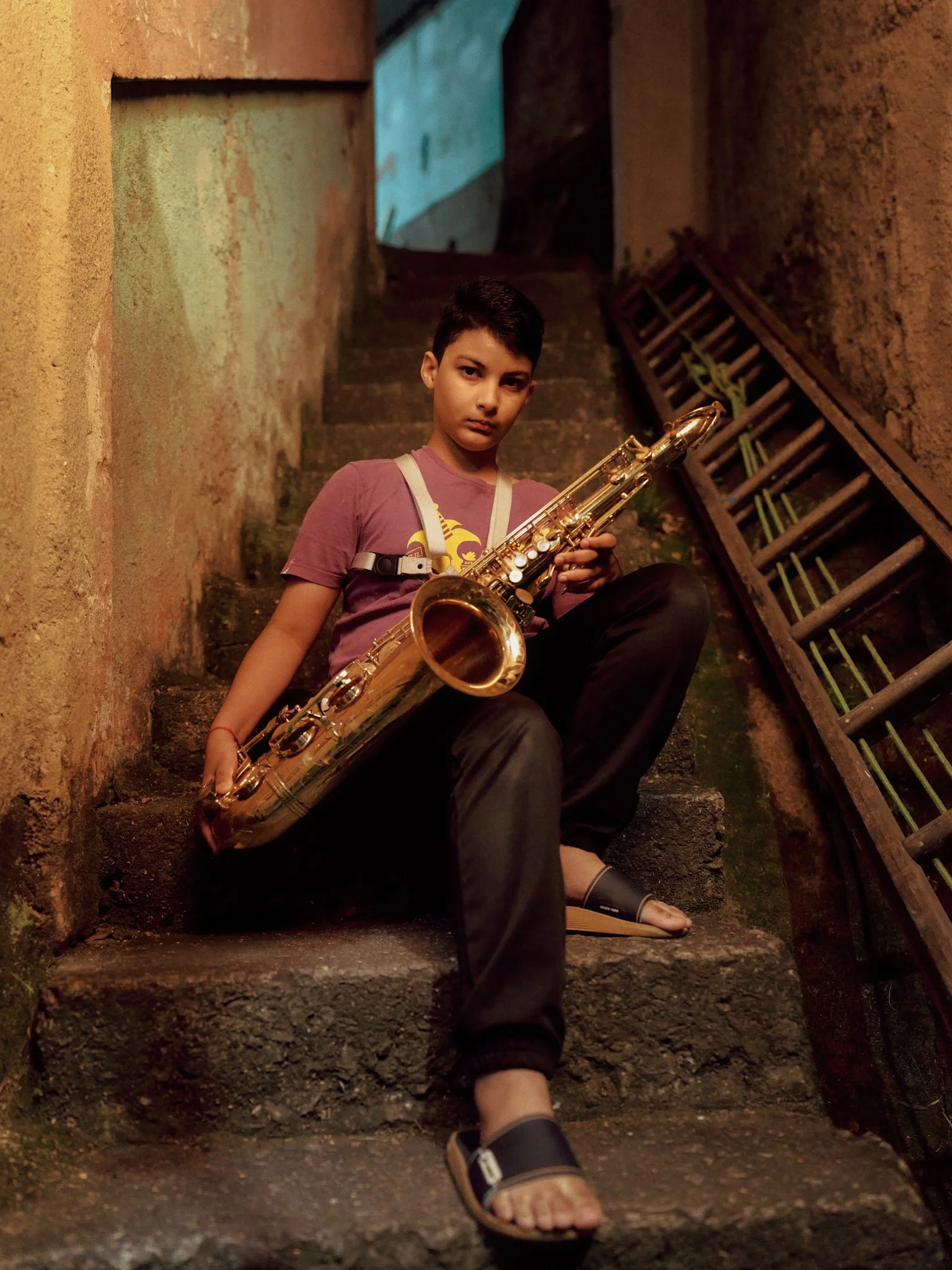 The portraits were made around the school and throughout the surrounding neighbourhood, placing the students within the environments that shape their daily lives. Rather than isolating the subjects from their surroundings, the work seeks to reflect the relationship between place, community, and personal growth. Stairways, alleyways, balconies, and streets become extensions of the classroom, spaces where practice, performance, and belonging intersect.